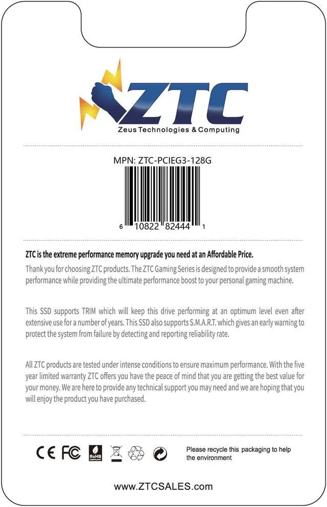Description: The ZTC PCIe M. 2 SSD offers enhanced bandwidth, low latency, and power efficiency. Perfect for tech enthusiasts, high-end gamers, and 4K & 3D content designers. With breakthrough speeds, and a broad range of capacity options up to 2TB. Feel the NVMe difference.