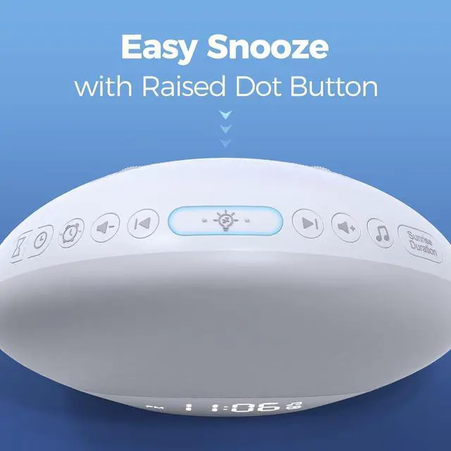 Easily find the top buttons even youre half-asleep. Raised dots on the light/snooze/alarm button to help you find it when it is dark.
