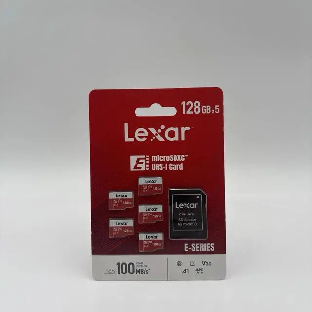 Expand your digital storage with the Lexar E-Series 128GB microSDXC UHS-I Memory Card 5-Pack, designed for reliable performance and everyday use. Each card offers 128GB of storage, making it ideal for capturing photos, recording HD videos, storing apps, and managing large files across multiple devices.