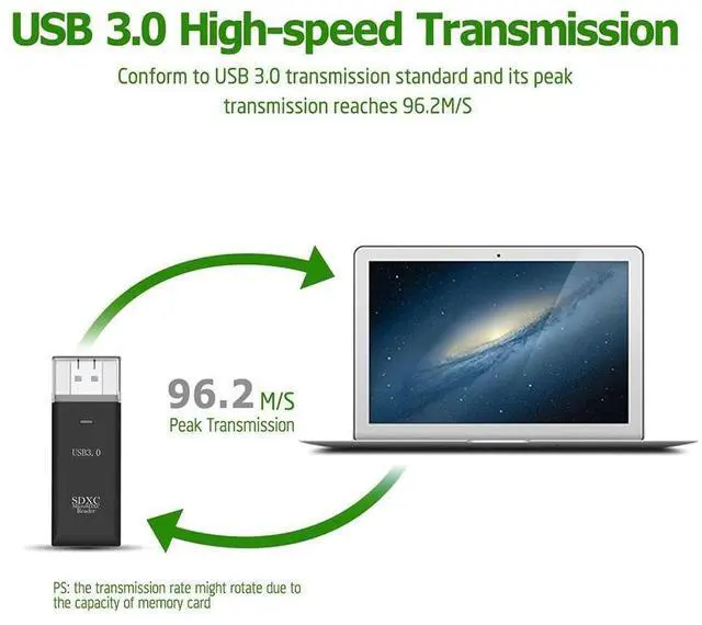 Designed with fast, plug and play USB 3.0 transfer tech, offering up to 5 Gbps data transmission speeds, and fully backward compatible with USB 2.0 and 1.1 ports without driver downloads.