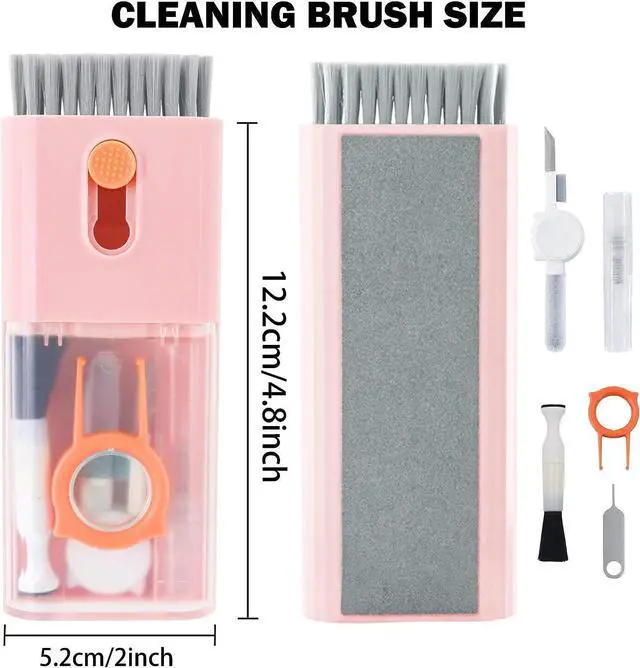 Integrated laptop and earphone cleaning tools, including Airpod 3 in 1 cleaning pen with silicone clip, brush specially used for cleaning camera lens, plastic keyboard clip, flocking sponge brush, screen cleaning solution spray, retractable keyboard brush, Mobile card opening tool and soft plush glasses cleaning cloth. It is used to remove dust, wax, and dirt, and to disinfect and clean Airpod mobile phones, laptop, computers, PCs,ipad.