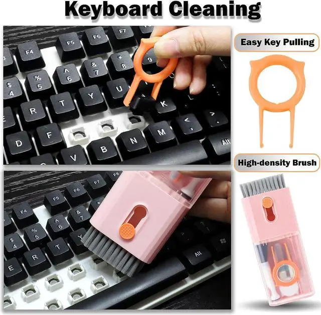 key cap for cleaning the keyboard. The bottom of the keyboard can be easily cleaned with a simple key extractor. High density brushes are large and sturdy,easy cleaning of keyboard gaps, desktop, etc. The retractable soft and hard brush of the professional keyboard cleaning kit is suitable for laptops and keyboards, while the mini high-density brush is ideal for deep cleaning between keyboard keys, used for cleaning between flat keys on laptops.