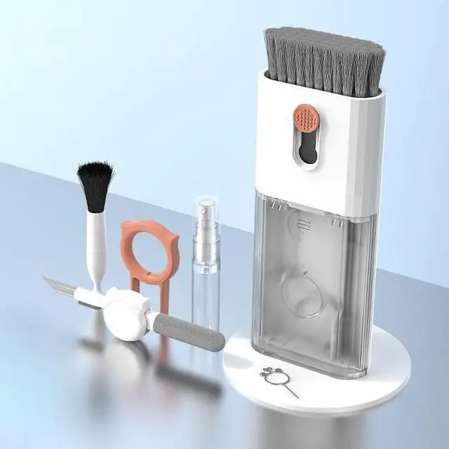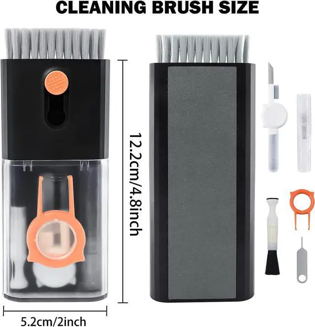 Integrated laptop and earphone cleaning tools, including Airpod 3 in 1 cleaning pen with silicone clip, brush specially used for cleaning camera lens, plastic keyboard clip, flocking sponge brush, screen cleaning solution spray, retractable keyboard brush, Mobile card opening tool and soft plush glasses cleaning cloth. It is used to remove dust, wax, and dirt, and to disinfect and clean Airpod mobile phones, laptop, computers, PCs,ipad.