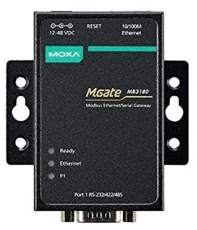 Moxa MGate MB3180: 1 Port RS-232/422/485 Modbus TCP to Serial Communication Gateway