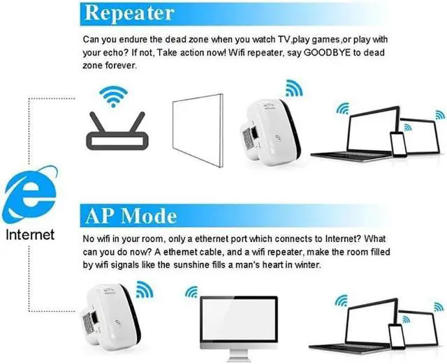 Wi-Fi speed:Provides 2.4G band Wi-Fi access up to 300Mbps with Wi-Fi standard - 802.11b/g/n technology.Wi-Fi booster:Repeater mode boosts wireless signal to previously unreachable or hard-to-wire areas. AP mode easily turn your wired internet connection into a wireless access point.Easy operation: Easily expand wireless coverage at a push of WPS button or broswer based setup on your phone or pc. Works with any routers, modem ,access point, Sky, virgin media etc.Fast ethernet port:Instantly turn youtr wired device like print server, game consoles, streaming players etc into wireless one, reaching 10/100M wired speed.Lightweight & portable: Classical white color & mini size with wall-plug design make it fit perfectly into the decor & move flexibly.Device type: wireless APRelay distance: 0.3 (Km)For interface protection: For interface protectionProtocol: 802.11nScope of application: home routerPlug Type:EU Plug,it applies to Indonesia, Germany, France, Spain, Italy & so on.colour: black & whiteMaterial: ABSsize: 8.5 * 4 * 7.5cmPackage Contents: 1* wireless repeater1*RJ45 network cable1*instruction manualOnly the above package content, other products are not included.Note: Light shooting and different displays may cause the color of the item in the picture a little different from the real thing. The measurement allowed error is +/- 1-3cm.