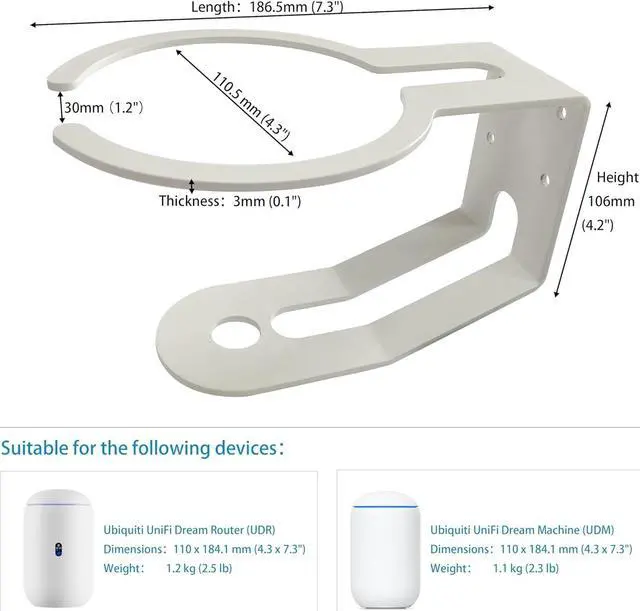 Neat Home and Enhanced WiFi Signal: With this bracket, you can securely mount your UniFi Dream Machine on the wall, keeping it out of reach from pets and children while also decluttering your space. Avoiding corner placement can also improve WiFi signal transmission, ensuring a stronger and more reliable connection throughout your home. (Note: UniFi Dream Machine and UniFi Dream Router not included. )