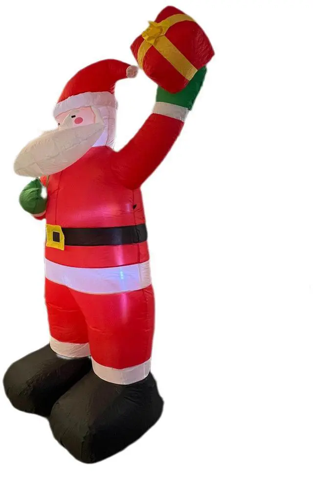 Create unforgettable holiday moments with this Toytexx Inc 8-foot inflatable Santa Claus, designed to light up your yard and lift holiday spirits. Featuring a gift in one hand and a sack in the other, this jolly figure inflates in minutes with the built-in blower and glows brightly thanks to integrated LED lights. Made from durable, waterproof polyester, it withstands snow, rain, and wind, making it ideal for outdoor use. Whether you're decorating your lawn, garden, patio, or porch, this large Santa makes a bold, festive statement. With its quick setup, nighttime visibility, and charming design, its the perfect centerpiece for holiday parties, family gatherings, or everyday Christmas cheer.