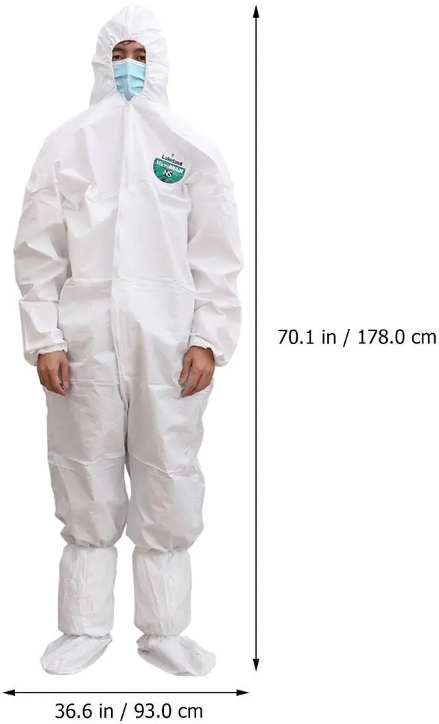 - Free size: About 178x135x93cm, suitable for height 160-180. - Used for paint spraying operations, Asbestos dust protection, Cleaning, Maintenance, and other industries. - The inexpensive protective clothes provides full upper body coverage during laminating and grinding, keeping dust and chemicals off clothes and away from your skin. - The zipper front hooded one-piece coat is lightweight, cool and comfortable, eliminating common excuses for not wearing protective clothing. - Quick dry, anti-static, beathable cleanroom garments. - Made of premium material, very sturdy and durable.