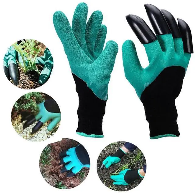 Package Contents: 2 Pairs of Garden Claw Gloves, Material: Rubber, ABS Plastic, Color: Green, Size: One Size Fits Most, Recommended