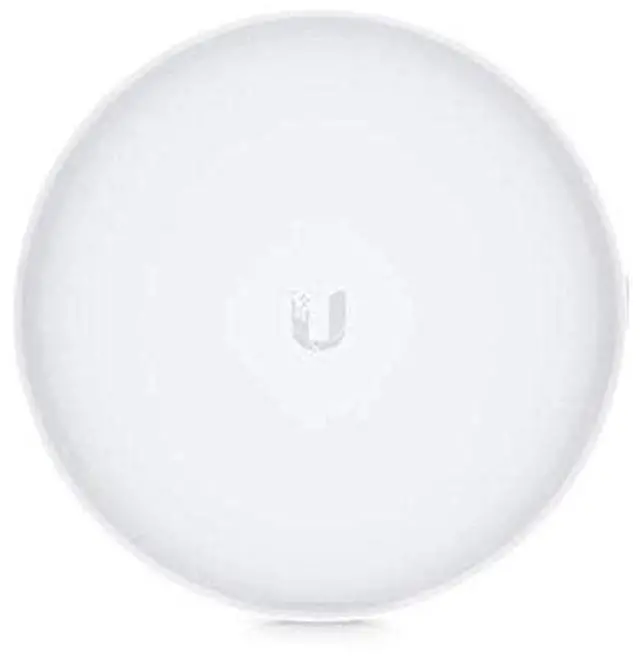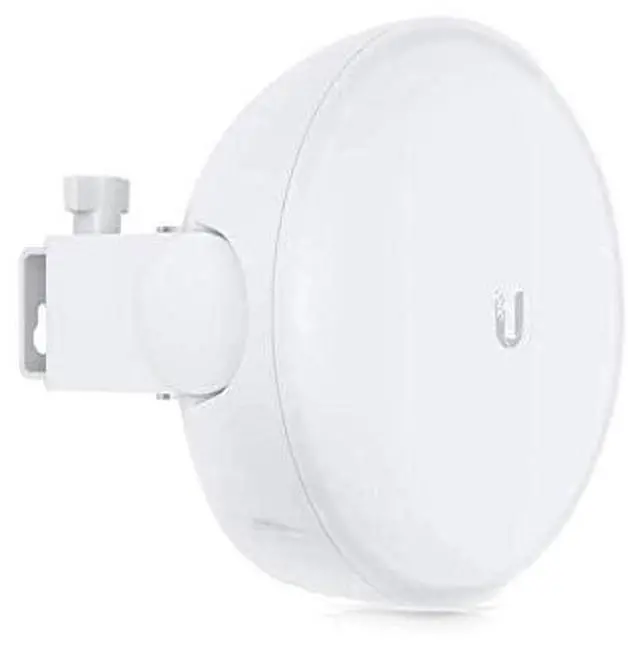 This outdoor radio features a 35 dBi antenna with an integrated Cassegrain reflector that provides over 1.5 Gb/s bi-directional performance over the 60 GHz frequency for low-latency connections at a range of up to 0.9 miles. The airMAX GigaBeam Plus comes with a pole-mounting kit for flexible placement options and can be powered using the included 24 VDC PoE adapter or by connecting it to a compliant network switch. Made from UV-resistant polycarbonate and stainless steel, this radio can be mounted onto a wall or a pole using the included kit. It is built with 24kV ESD/EMP protection and can withstand temperatures between -40 and 140°F in addition to wind speeds of up to 125 mph. Quickly configure, monitor, and manage the airMAX GigaBeam Plus using the Ubiquiti UISP via Bluetooth or online portal.