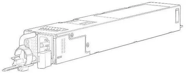 The Juniper Networks power supply is a hot-removable and hot-insertable field replaceable unit (FRU) that powers the ACX7100 router series. It features a gold-colored handle to signify that it supports front-to-back airflow (port-to-FRU). The AC plug-in module requires 115/240 volts of AC.