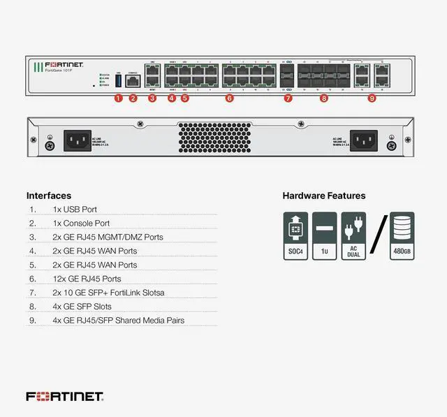 FortiGate-101F Hardware plus 1 Year FortiCare Premium and FortiGuard Unified Threat Protection (UTP)
