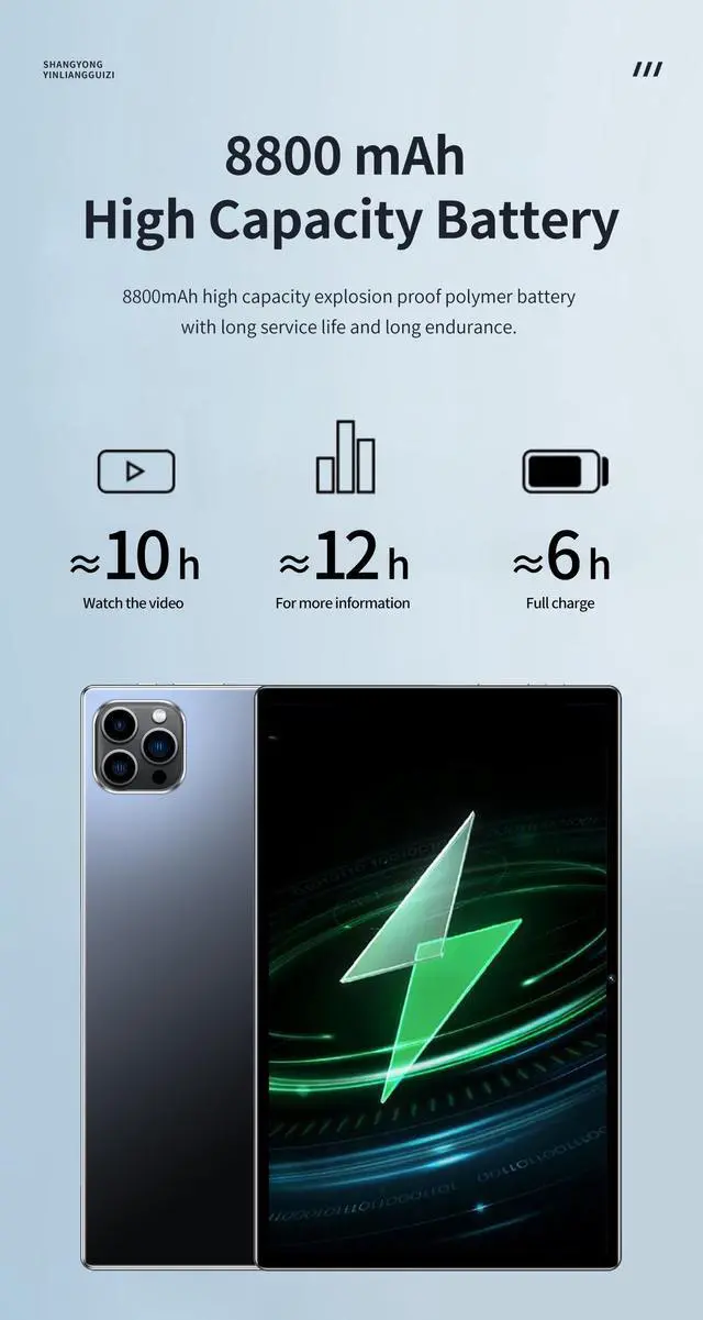 1. Android 12 tablet equipped with an 8-core processor, the operating frequency is up to 1.6 GHz. providing outstanding performance.