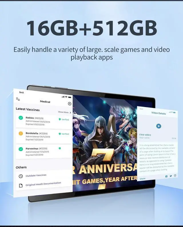 16GB+512GB: Easily handle a variety of large. scale games and videoplayback apps