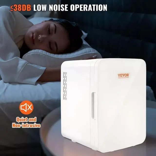3. With thoughtful noise reduction technology, this small mini fridge operates at a sound level of below 38db, not only does it not disturb your work and life, even if it is placed in the bedroom, it will not disturb your rest.