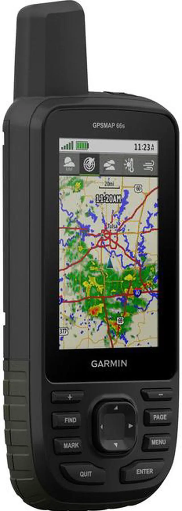 NAVIGATE YOUR NEXT ADVENTURE Whether youre hiking, hunting, climbing, geocaching, kayaking or mountain biking, explore more by using this premium, rugged handheld with a 3 color display. No matter the conditions, youll be able to see the large, sunlight-readable color display. Just GPS is great, but multi-GNSS satellite support and outdoor sensors are better. Maps as pretty as a picture and just as detailed. See whats coming with Active Weather, and never again be surprised by those clouds rolling in. Open up a world of off-grid capabilities with the Garmin Explore website and app.