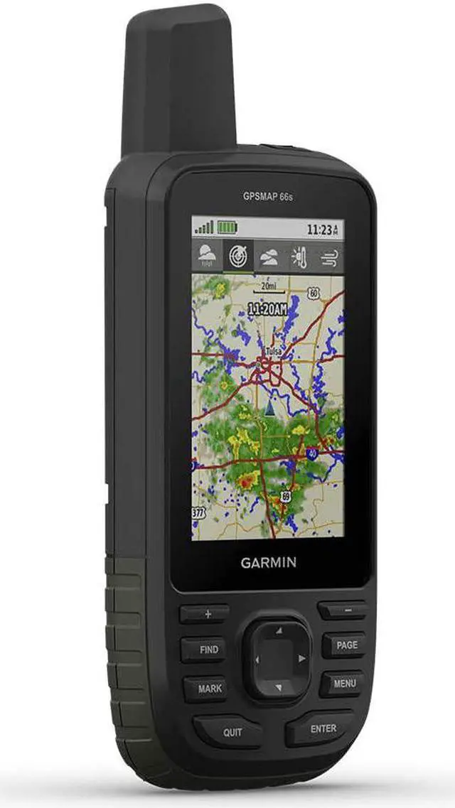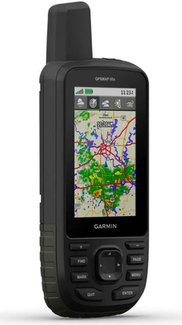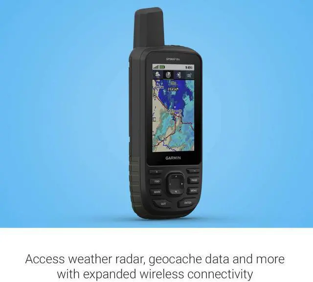 ACTIVE WEATHER When paired with your compatible smartphone, you can get real-time forecast information and live weather radar, so youre always aware of the surrounding conditions. BUILT FOR ADVENTURE This handheld is built to military standards for thermal, shock and water performance (MIL-STD-810), and its even compatible with night vision goggles. LED FLASHLIGHT The GPSMAP 66 series helps you keep gear to a minimum with a built-in LED flashlight that can be used as a beacon to signal for help. GEOCACHING Get automatic cache updates from Geocaching Live, including descriptions, logs and hints.