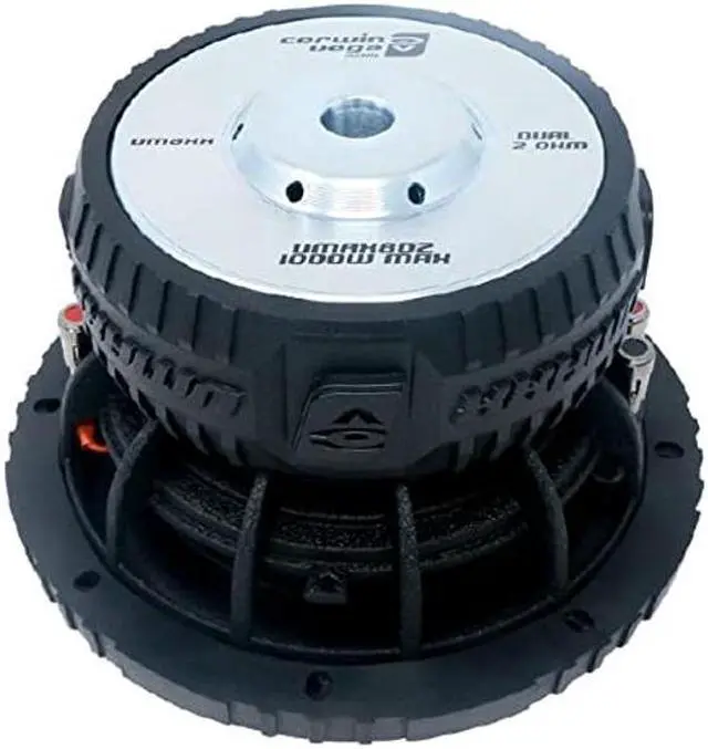 Ready to add more bass to your ride? The Cerwin Vega Mobile VMAXX8D2 1, 000 Watt 8 in. Subwoofer is just what you need. Its 2-1/2 in. voice coil, heavy-duty industrial-strength aluminium cast frame, and black patterned pulped cone with red stitching help make this high-performance car subwoofer stand out from the crowd!