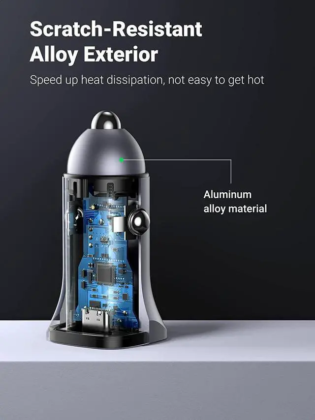 Safe Protection: With built-in power management chip, UGREEN Type C car charger not only offers fast charging speed but also prevents your devices from being exposed to over-voltage, over-current, over-temperature, short circuit, etc.