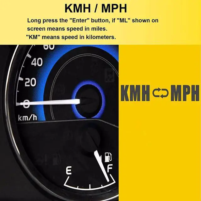 A. Long press the Enter button, when the left side of the screen lights up ML means the speed is displayed in miles.