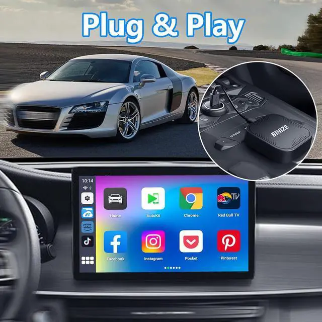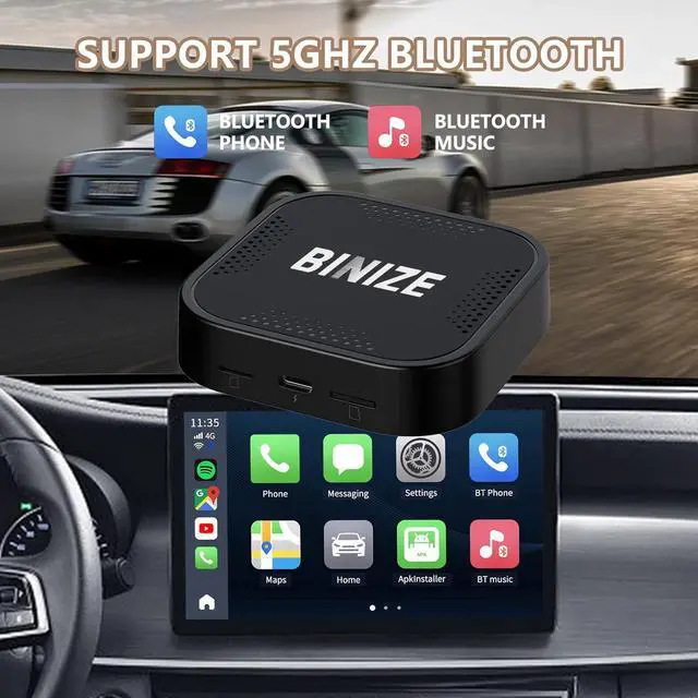 Binize wireless CarPlay ai box is compatible with OEM wired CarPlay, it can convert wired connectivity to wireless, make your car stereo a Android 13 device