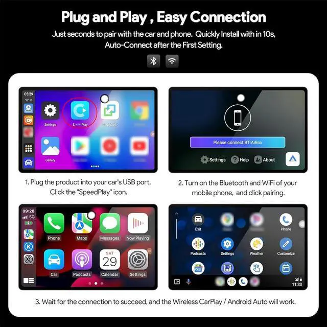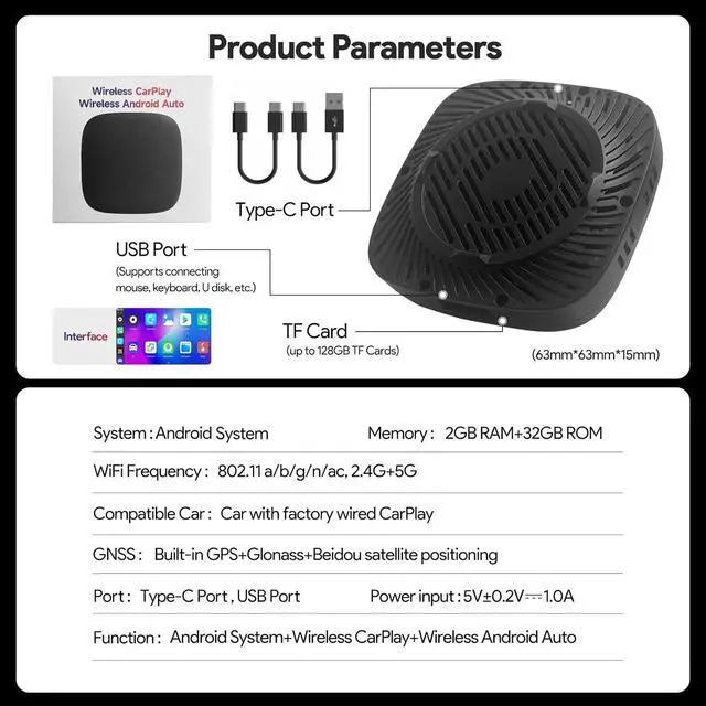 2. If your car originally supports wireless CarPlay & wired Android Auto, and you're experiencing power or USB display issues, don't worryit's normal. To resolve this, switch the CarPlay AI box to use the wired Android Auto channel via TF card conversion for normal operation.