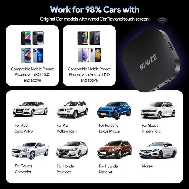 Binize CarPlay AI Box for Cars with OEM Wired CarPlay/Android Auto