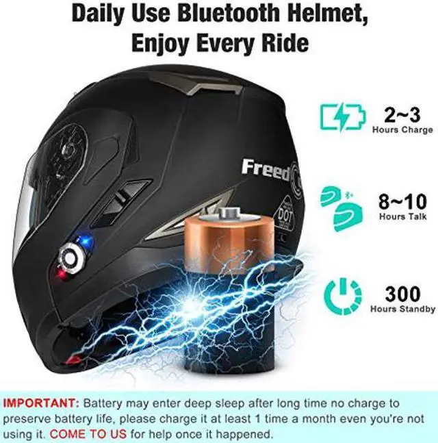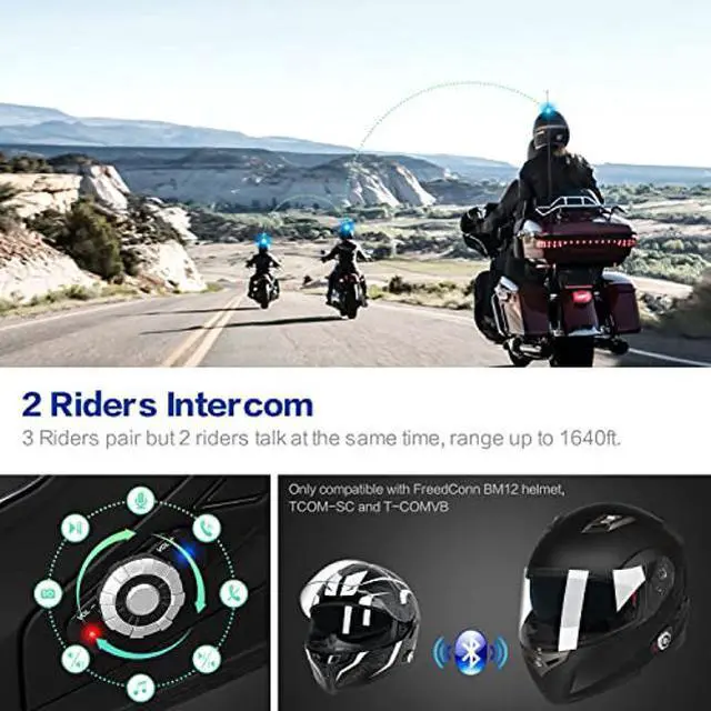 FreedConn Motorcycle Helmet BM2-S BLUETOOTH HELMET FOR MOTORCYCLE/ SNOWMOBILE/ SKIING Range up to 500 meters ( 1640 feet) 3 riders pairing / 2 riders talking at the same time Up to 9 hours intercom talking, 12 hours phone talking & 120 hours standby time DSP Echo cancellation and noise suppression technology offers high quality voice V 3.0 +EDR BLUETOOTH MODULAR HELMET Bluetooth motorcycle helmets support MP3 music, FM radio and GPS voice prompt. Multi-tasking technology - incoming calls overrides intercom, music and navigation audio. Listen to stereo music via Bluetooth enabled device, like cell phone, MP3 with A2DP, supports playback control to achieve play/ pause/ previous song/ next song via AVRCP.
