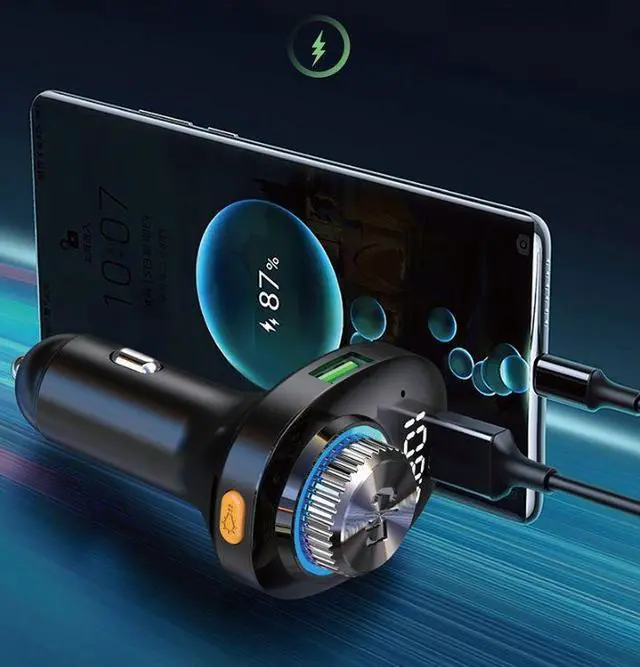 New Trend 3 in 1 USB Car Charger QC 30. PD Fast Car Charger Support BT Call Mp3 Player Car Charger