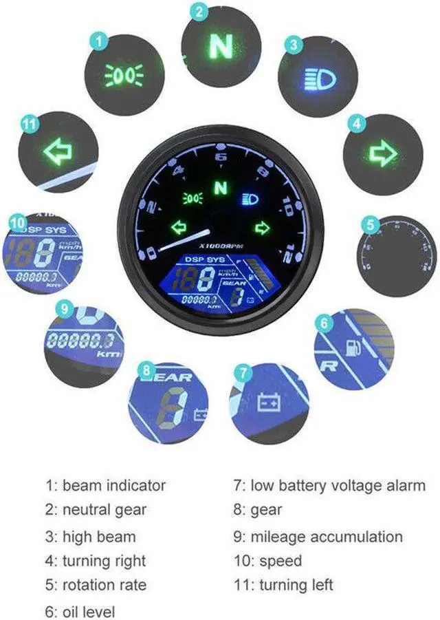 Digital display speed range:0-199km/h (error +10%)