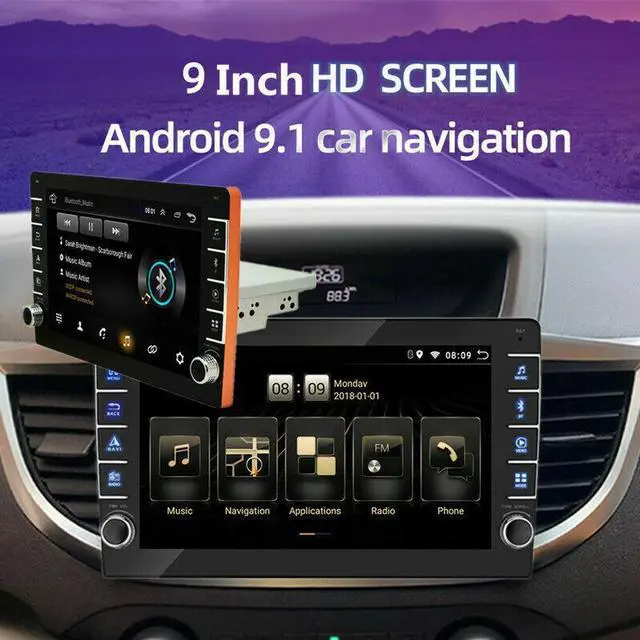 1Din Car Adjustable Radio 9" GPS Android GPS Nav Multimedia Player Button Knob