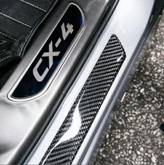 4PcCar Door Sill Pedal Carbon Fiber Scuff Plate Cover Panel Step Protector Strip
