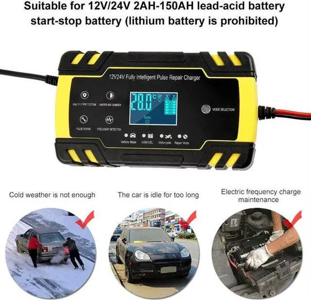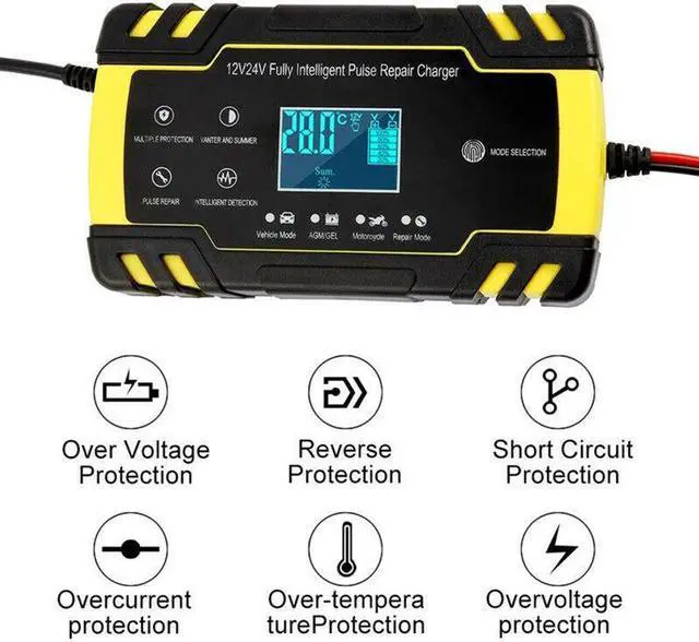 Motocycle Battery Charger Intelligent Pulse Repair LCD Display Charging Device