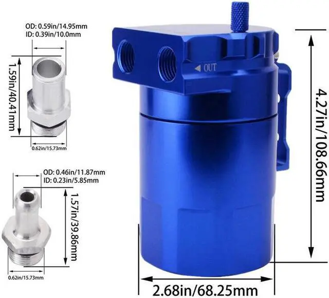 Car Oil Catch Tank Can Reservoir 300ml Aluminum Baffled Blue Oil Catch Tank Kit