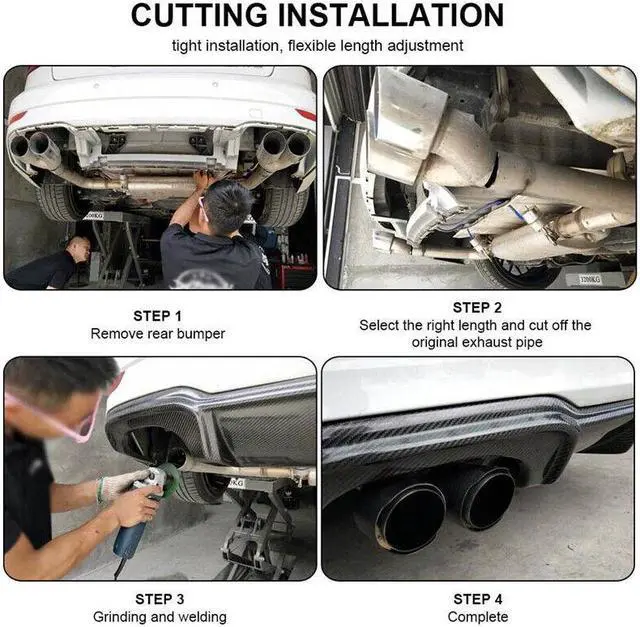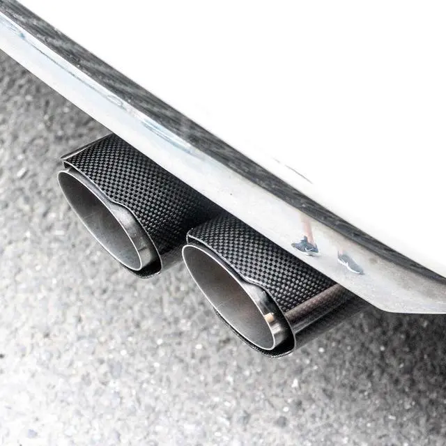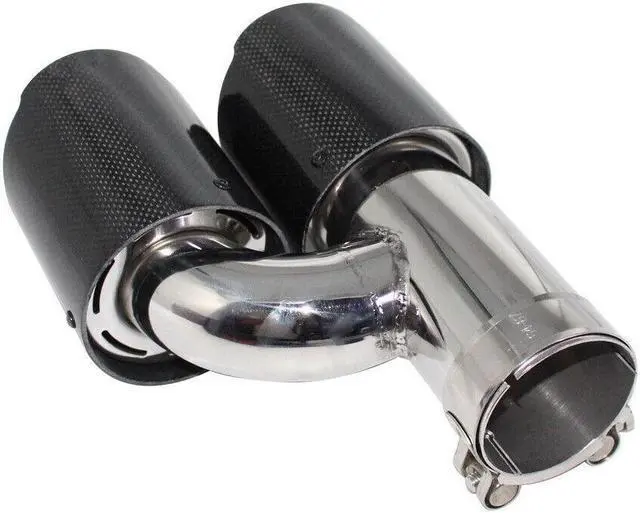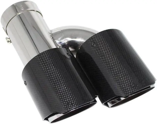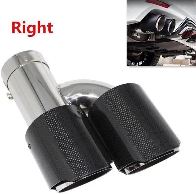 Car Right Glossy Carbon Fiber Exhaust Pipe H Rear Dual Exhaust Tip End Chrome