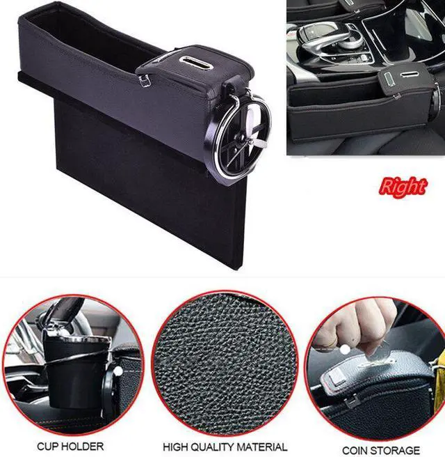 1Pc Car Right Seat Catcher Organizer Storage Coin Box Side Pocket With Cup Hoder