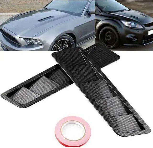 2Pcs Carbon Fiber Car Air Flow Intake Scoop Hood Bonnet Vent Front Engine Cover