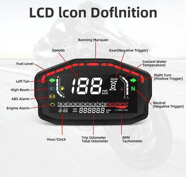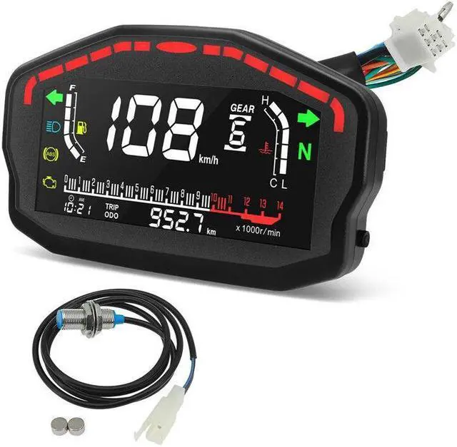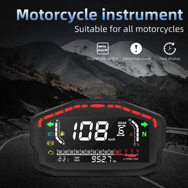 Adjustable Motorcycle Speedometer Dashboard Temperature Gauge LED LCD Odometer