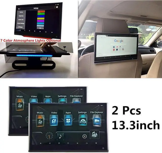 2x 13.3 Android Car Headrest Monitor Video Touch Screen WIFI Bluetooth Player