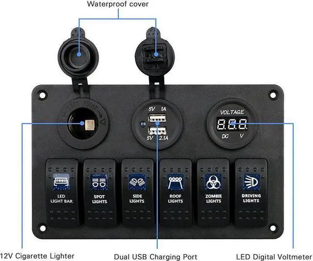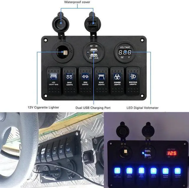 Rocker Button Digital Voltmeter Car USB Charger Cigarette Lighter Socket