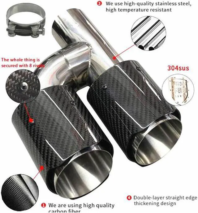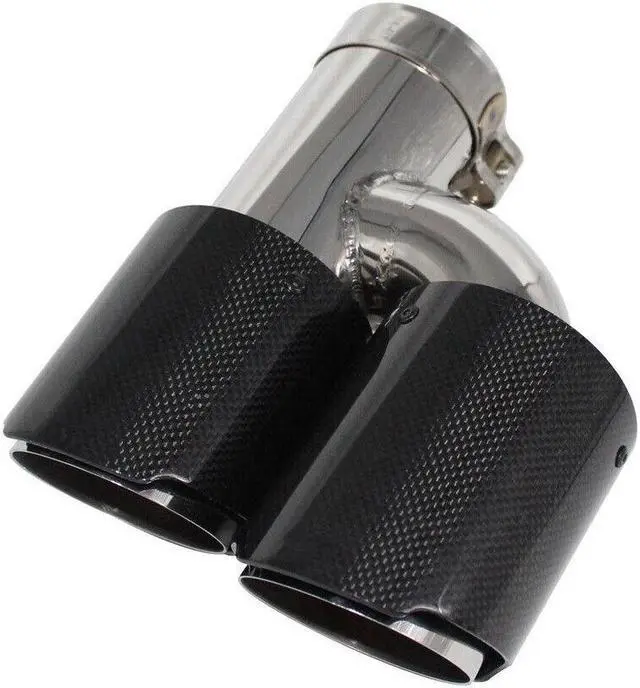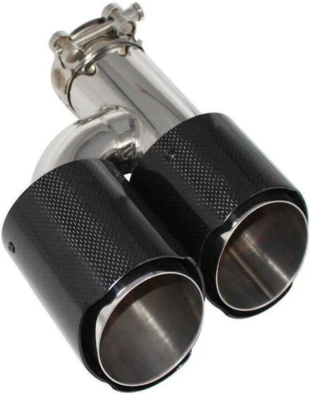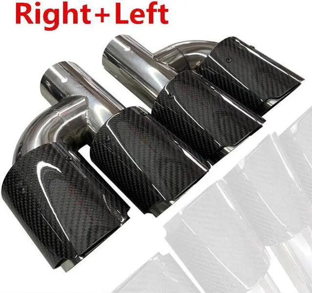 Car Right+Left Glossy Carbon Fiber Exhaust Pipe H Rear Dual Exhaust Tip End