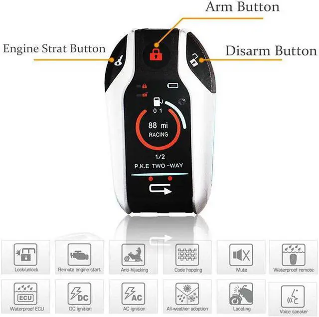 Motorcycle Anti-Theft Two-Way Alarm Automatic Locking Unlock Key Start Flameout