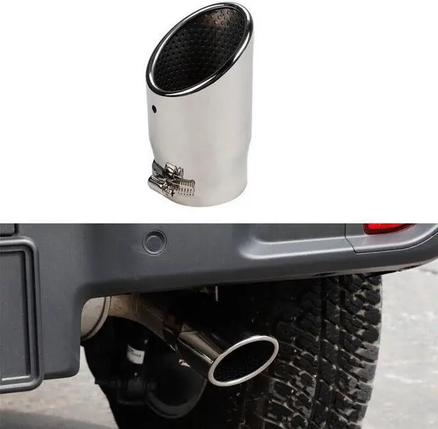 1x Car Chrome Silver 87mm Mufflers Rear Tail Exhause Pipe Steel Exhaust Tip Tube