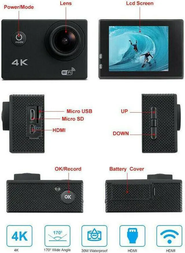 Motorcycle ATV 4K WiFi Remote Helmet Camera Extreme Sports DV Driving Recorder