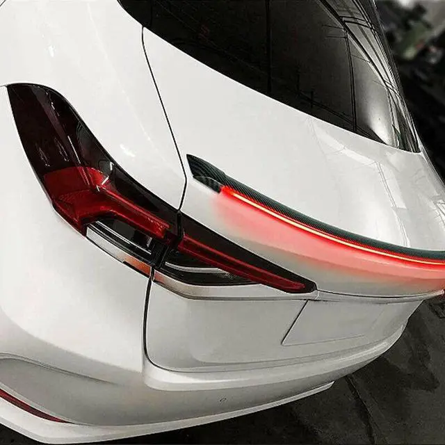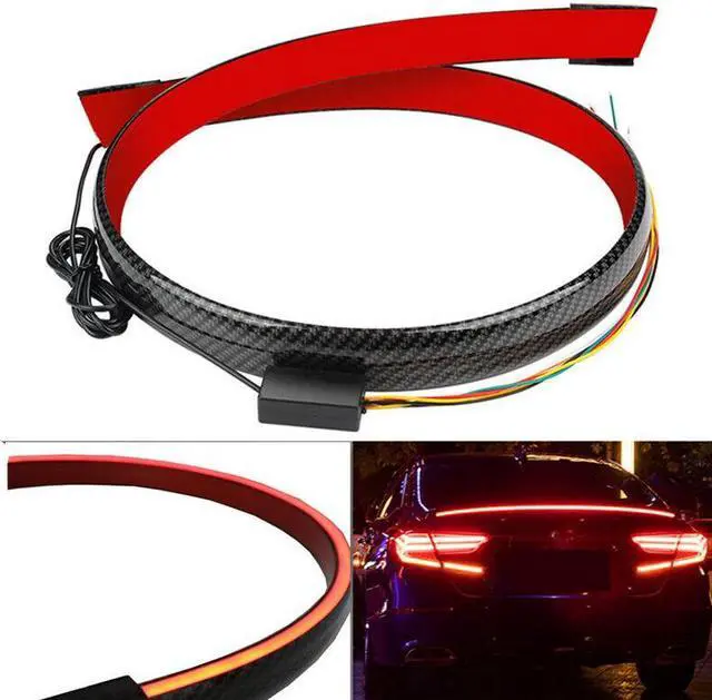 Car Carbon Fiber Rear Trunk Spoiler Lip Light Strip Signal BrakeTail Wing Lamp