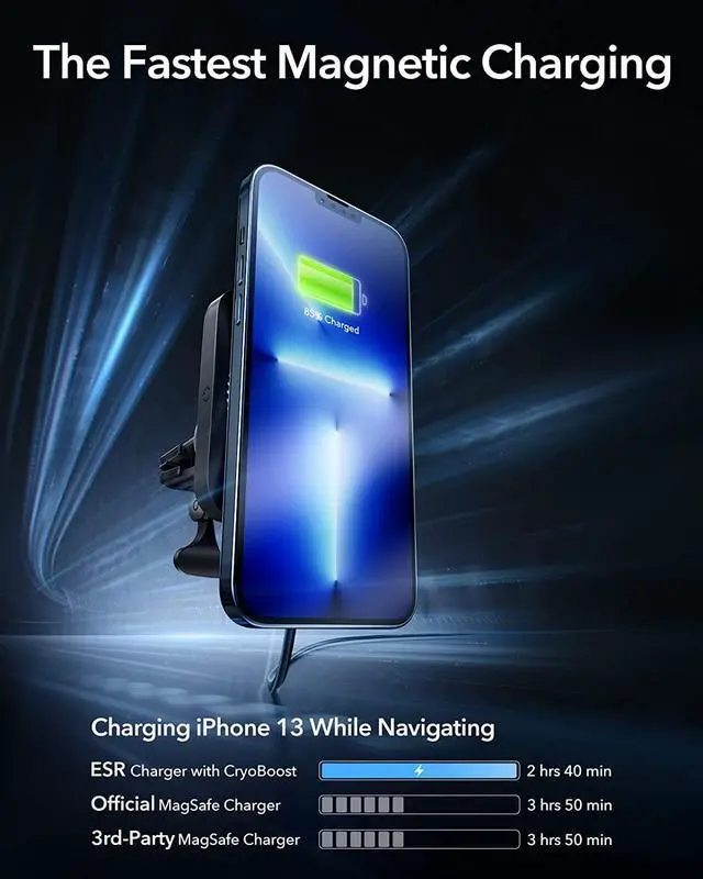 The Fastest Magnetic Charging: charges faster while navigating than any other magnetic wireless charger; requires 18W+ power adapter for fast charging, not included