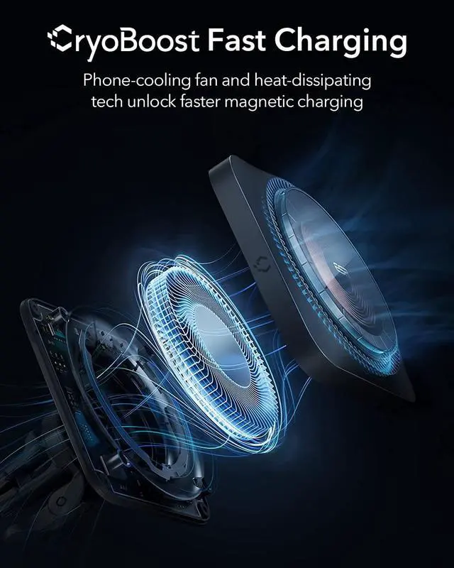 CryoBoost Fast Charging: phone-cooling fan and heat-dissipating tech combine to keep your phone cool and charging speeds at their maximum