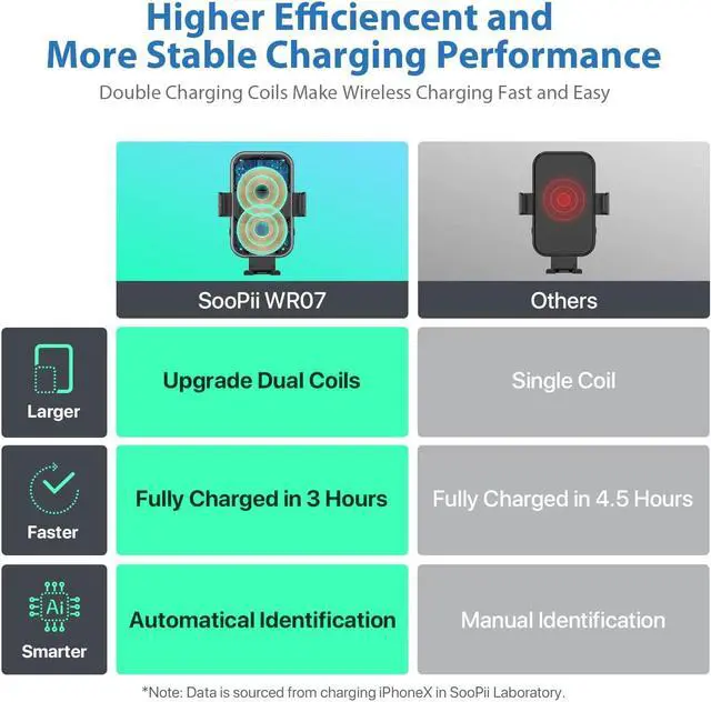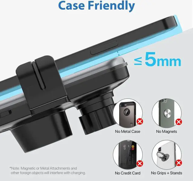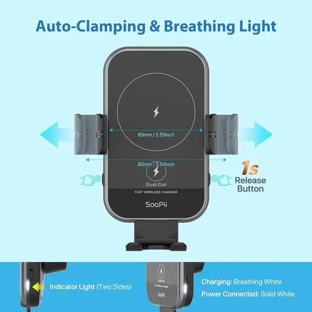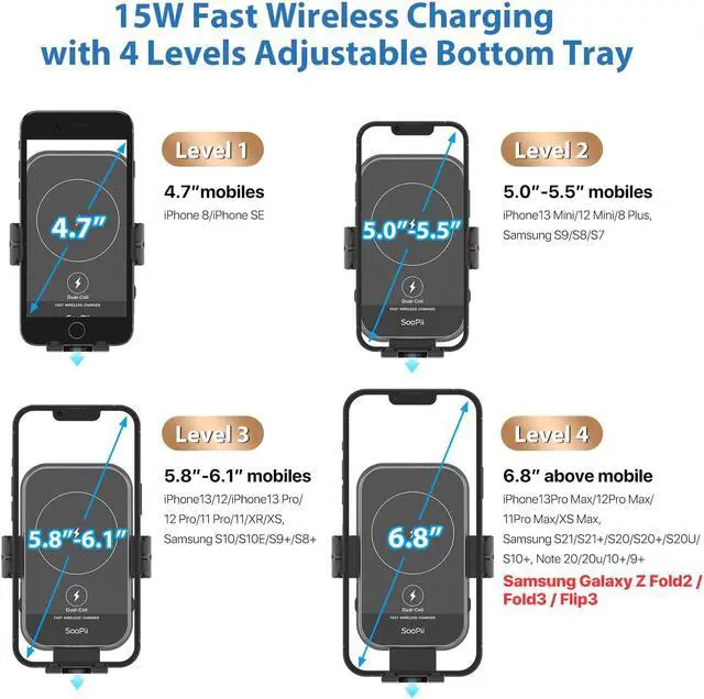 Easily: Upgraded Dual Coils create a wider wireless charging area for phones, improving wireless charging performance and making sure phone's wireless charging coil is aligned with the charger mount's charging area easier, also available for foldable smartphones like Samsung Galaxy Z Fold2/3.