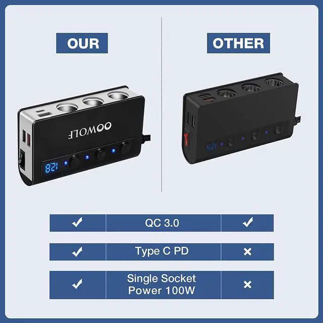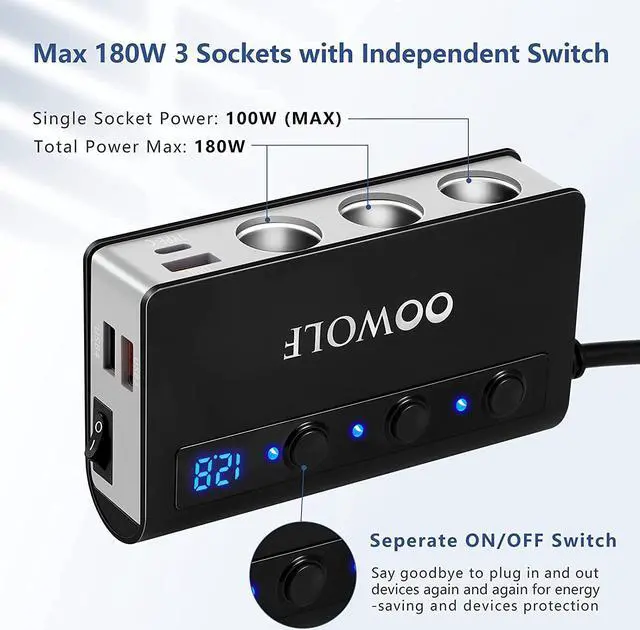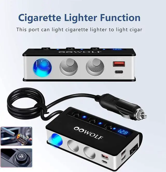 Independent Power Switch &LED Voltage Display - Each car usb charger matched with its individual switch for energy-saving and devices protection. The yellow LED display of cigarette lighter splitter helps monitor your car battery voltage. For 12A car, when the voltage is under 11.5V or higher than 14.9V; for 24V car, when the voltage is under 23.1V or higher than 27.3V, the display while shinning the remind driver you car with battery issue.
