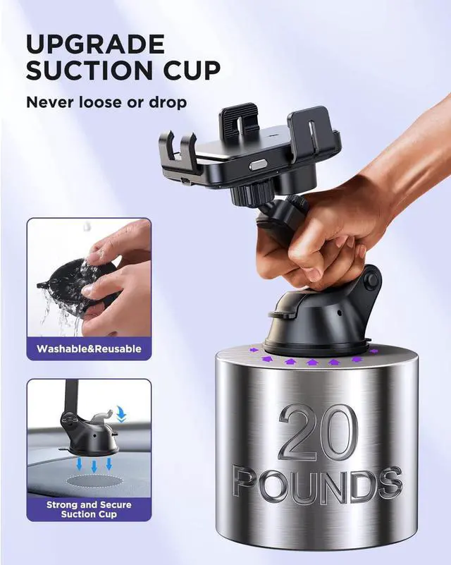 Super Stable BaseJoyroom phone mount for car wireless charger's base is equipped with a powerful suction cup and professional 3M adhesive (high temperature resistant). The base's suction cup has been tested thousands of times, it can absorb more than 20 pounds of objects without dropping. Even if passing speed bumps or driving on mountain roads, you dont need to worry about it falling. In addition, the bracket arm and clip are equipped with silicone pads for anti-slip and anti-vibration.